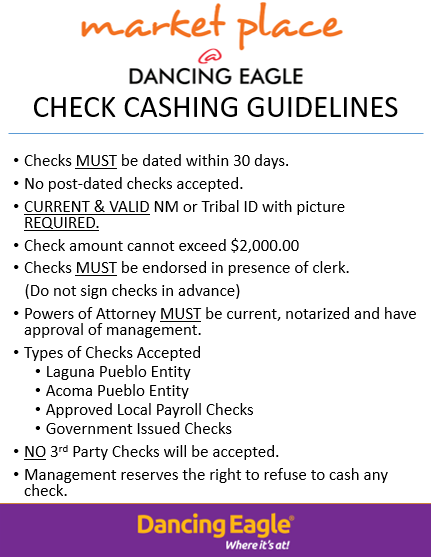 CLICK HERE TO VIEW ALL CHECK CASHING GUIDELINES